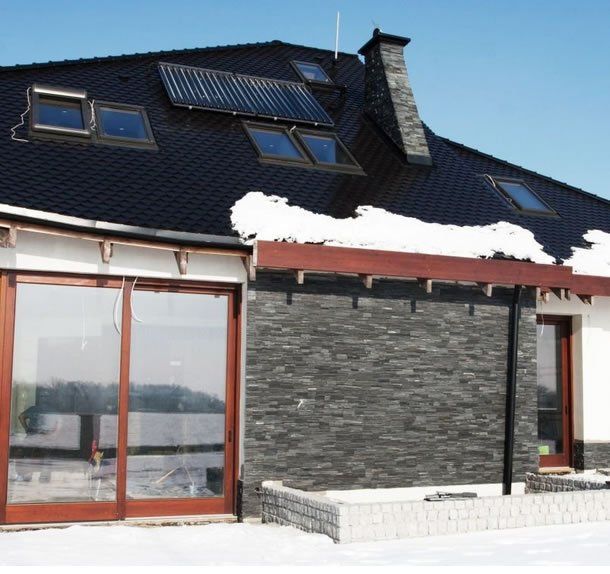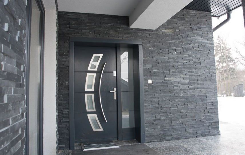 Natursteinpaneele in Schwarz und Graphit. Prüfen Sie auch Sandstein Verblender.