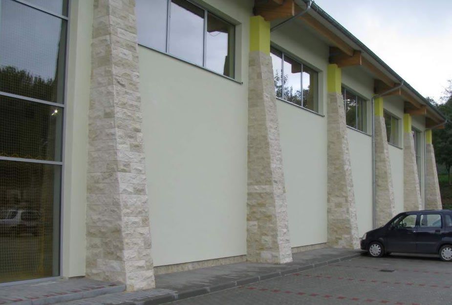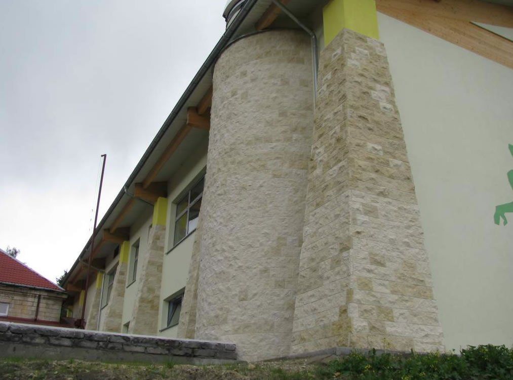 Natürlicher Kalksteinverblender. Stärke: ca. 30 mm. Die Farbe ist ein Mix aus Weiß und Gelb. Prüfen Sie auch Kalkstein Verblender.
