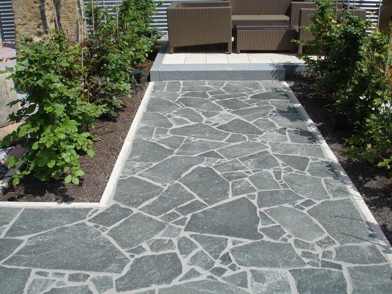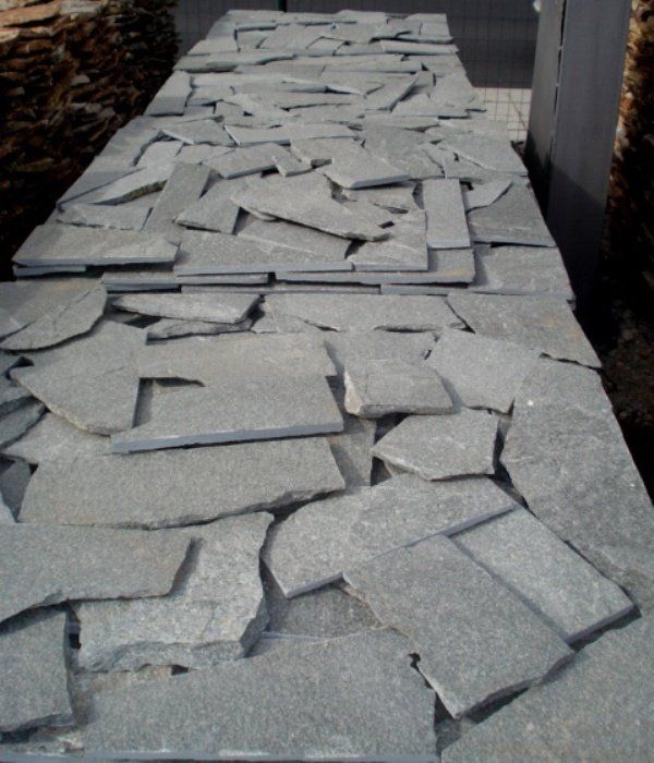 Granit-Bruchstein in schönen Grau- und Silbertönen. Stärke: ca. 30 - 40 mm getrommelt, ca. 20 mm nicht getrommelt.