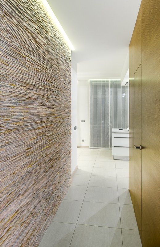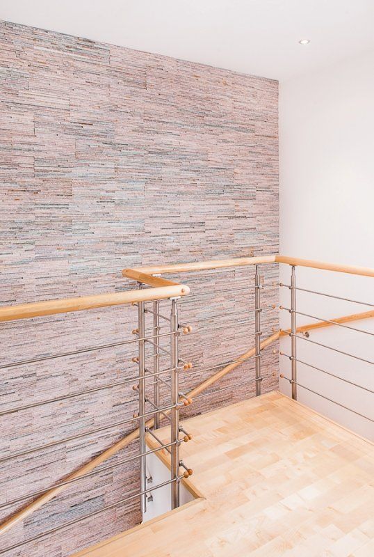 Natursteinpaneel mit dünnen Riemchen - sehr helle Farben von Grau und Beige